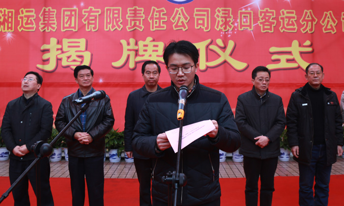 1月19日上午,湘運集團有限責任公司淥口客運分公司舉行揭牌儀式。揭牌儀式上,湘運集團董事長朱聃致辭,株洲縣交通運輸局局長易國林作重要講話,淥口客運分公司經理王紹輝致答謝詞。株洲縣人民政府副縣長劉行國、集團公司董事長朱聃揭牌。湘運集團黨委書記、總經理朱遠東和其他領導出席揭牌儀式。